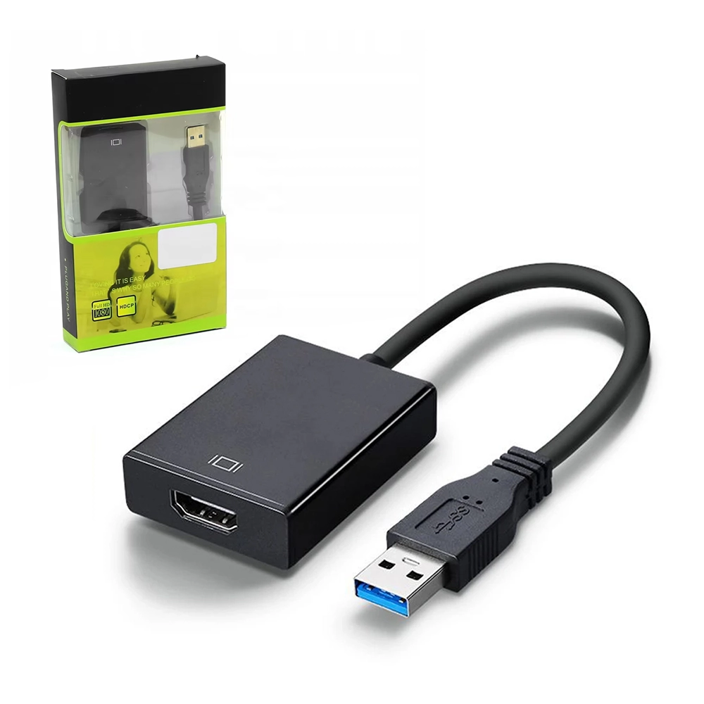 Adaptador USB 3.0 a HDMI que permite conectar una computadora o laptop a un monitor, TV o proyector mediante puerto USB. Ideal para ampliar o duplicar pantalla, facilitando el trabajo multitarea. Requiere instalación de controladores para su correcto funcionamiento. Compatible con equipos que cuenten con puerto USB 3.0.