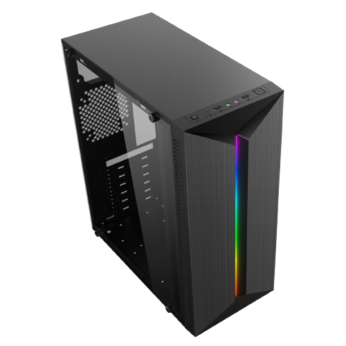 Case vacío Golden PC modelo 1715, diseñado para el armado de computadoras de escritorio. Incluye kit de tornillos para instalación de componentes. No incluye ventilador, lo que permite personalizar la refrigeración según la necesidad del usuario. Ideal para proyectos de armado o actualización de PC.