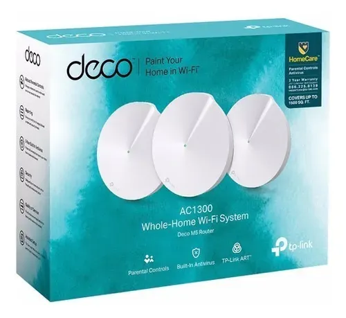 Sistema Wi-Fi Mesh TP-Link Deco M5 con tecnología AC1300 que ofrece cobertura continua y estable en todo el hogar. Incluye 2 unidades que trabajan de forma inteligente para eliminar zonas sin señal. Cuenta con puertos Gigabit Ethernet, control parental avanzado, antivirus integrado y roaming inteligente para una conexión fluida al moverte por la casa. Ideal para casas grandes, oficinas y múltiples dispositivos conectados.